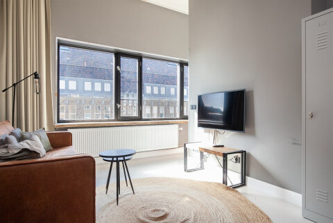 These beautifully fully furnished located is located on the 3d floor of the building. The apartment has a large livingroom, own kitchen with hob, extractor and fridge. The apartment has one big bedroom and a smaller bed/studyroom. This apartment also has a nice fully equipped bathroom.