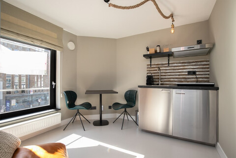 This apartment is located in one of the most central locations in Utrecht, between the Neude and the Oudegracht. It is also located just a few minutes' walk from Utrech Central Station and offers access to many shops, cafes and restaurants in the heart of the city. Of course you can go for daily shopping in the immediate vicinity and you will find connections with the public transport right outside the door.