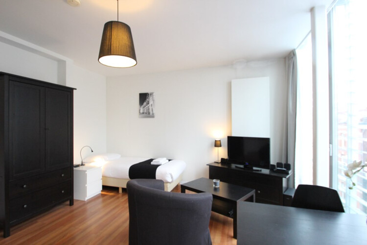 Beautiful partly furnished semi-independent studio of approximately 25m² for rent, located on the Korte Jansstraat. Available per 1st of February 2024 for € 845,-exclusive user costs.