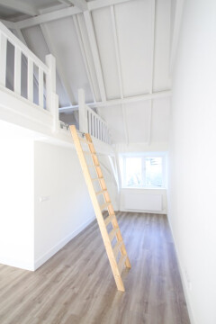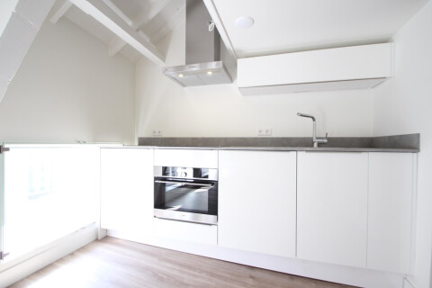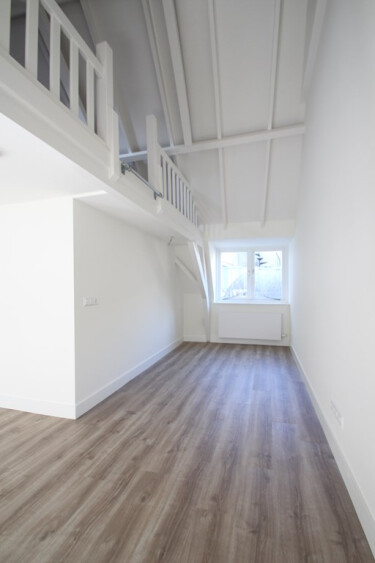 Deze prachtig gerenoveerde studio is gelegen op de 3e verdieping van het pand. De studio beschikt over een luxe keuken met koelkast, combi oven/magnetron, vaatwasser, kookplaat en afzuigkap. Middels een trap in de woonkamer heeft u toegang tot de vide welke uitstekend gebruikt kan worden als slaapgedeelte. De badkamer is v.v. een douche, wastafel en toilet. Op de hal is er een wasmachine aansluiting. De gehele studio is uitgerust met een keurige pvc vloer. Kortom een prachtige studio op een unieke locatie.