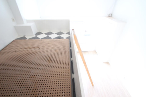 Dit appartement is gelegen op 1e verdieping, De woonkamer is heerlijk licht dankzij de hoge, oorspronkelijk schoolramen. In de woonkamer met een hoogte van circa 3,40 m. bevindt zich een open keukenblok voorzien van een elektrische kookplaat en een opstelplaats voor een koelkast met daarboven een royale hoogslaper die via een houten steektrap te bereiken is. Bij de entree vind je de badkamer, de wc en bergruimte.