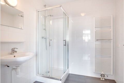 Deze prachtige studio is gelegen op de 1e verdieping aan de achterzijde. Via de gezamenlijke entreehal komt u het appartement binnen in de woonkamer De woonkamer beschikt over een open keuken welke is voorzien van een vaatwasser, koelkast en 4-pits gasfornuis. Vanuit de woonkamer heeft u toegang tot een ruim balkon over de gehele breedte van de studio van ca. 12m2 gelegen op het westen. Grenzend aan de woonkamer is de slaapkamer gelegen. De badkamer beschikt over een douche, wastafel, toilet en wasmachineaansluiting.