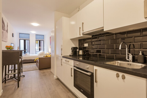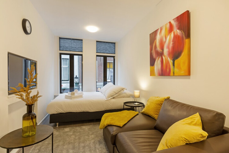 De studio is te vinden op de eerste verdieping van het gebouw, te betreden via een gang op de begane grond. De studio bevat alles wat je nodig hebt om van je tijdelijke verblijf in Utrecht een geweldige ervaring te maken. De studio heeft een warm en eigentijds interieur, een nieuwe keuken, een zit- en eethoek en een groot comfortabel tweepersoonsbed. Verder biedt het splinternieuwe studio alle comfort met een douche, toilet, wastafel en was- / droogcombinatie. Tevens bevat deze prachtige studio een aparte werkkamer.
