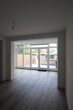 Dit volledig opgeknapt appartement is gelegen op begane grond van het pand en is volledig nieuw. De woning heeft een ruimte woonkamer met open keuken die is v.v. alle benodigde inbouwapparatuur. Aan de achterzijde heeft u toegang tot een ruime tuin met berging. De badkamer is v.v. een douche, wastafel en toilet. Er is een aparte ruimte waar is een wasmachine is geplaatst.
