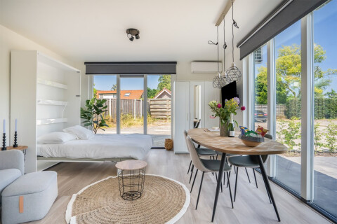 Deze knusse studio is gelegen in een rustige omgeving. De studio heeft een ruime keuken die is v.v. verschillende inbouwapparatuur. De kamer kenmerkt zich door veel lichtinval en geeft ook toegang tot een eigen tuin. De badkamer is v.v. een douche, wastafel, toilet en was/droog combinatie.