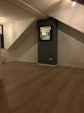 Het betreft een gestoffeerde ongemeubileerde studio op de zolderverdieping van een jaren 30 woning welke is gesplitst in drie verhuurbare ruimtes, vloeroppervlak ca. 35m² woonoppervlak i.v.m. schuine daken ca. 20m².