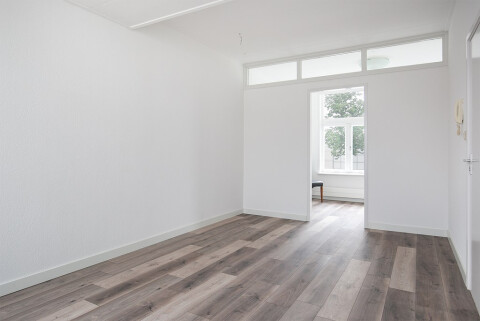 Dit prachtig gerenoveerde appartement is gelegen op de 1e verdieping. U komt het appartement binnen in de woonkamer, die aan de voorzijde toegang geeft tot de 1e slaapkamer van ca 8m2. Deze kenmerkt zicht door veel lichtinval. Aan de achterzijde is de gesloten keuken gelegen met wasmachine en afzuigkap. Vanuit de keuken heeft u ook toegang tot badkamer met douche, wastafel en toilet. Tevens geeft de keuken ook toegang tot een balkon van ca. 6m2. Tot slot is er achter de badkamer nog een ruime slaapkamer gelegen. Dit appartement is op een rustige locatie!