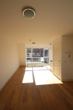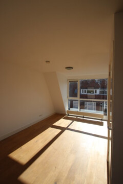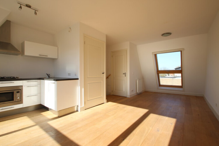 Deze volledig zelfstandige studio is gelegen op de bovenste verdieping van het pand. De studio kenmerkt zich door veel lichtinval. Aan de voorzijde is de open keuken gelegen die is voorzien van alle benodigde inbouwapparatuur. In het midden is een kleine opbergkast en aan de achterzijde bevindt zich een badkamer met douche, wastafel, toilet en wasmachine aansluiting. Doormiddel van een roomdivider is deze ruimte uitstekend op te delen tussen een slaap en woonkamer gedeelte.