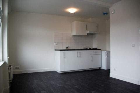 Dit betreft een zelfstandige studio die is gelegen op de 2e verdieping aan de voorzijde. De studio is voorzien van een keukenblok met kookplaat, afzuigkap en een ‘losse’ koelkast. De badkamer is voorzien van een douche, wastafel en toilet. In de algemene ruimte van de woning is een wasmachine die gedeeld wordt met de overige bewoners.