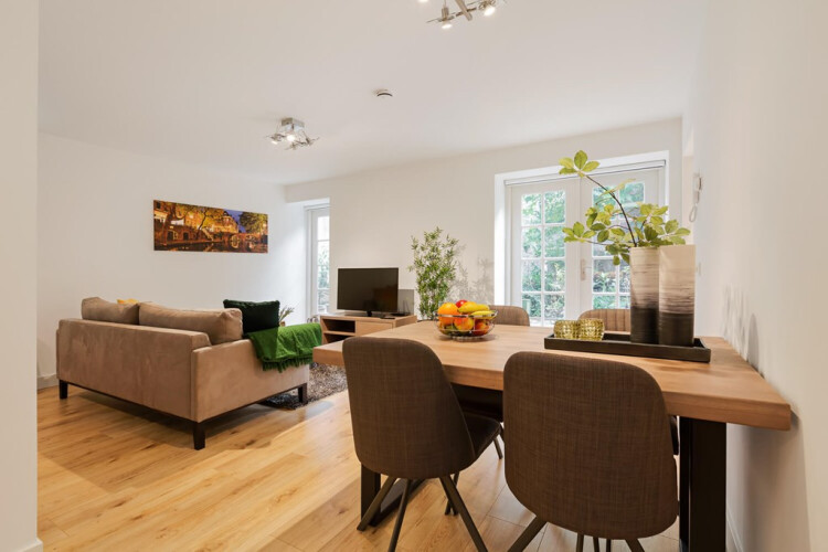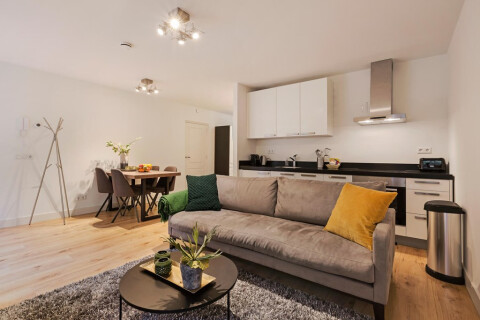 This apartment offers a modern interior that includes a dining area, comfy sofa, a brand new fully equipped kitchen, a bathroom, a separate toilet, one bedroom with a double bed, a nice view from the apartment at the front side of the building, and a communal garden has been added to the apartment on the rear side of the building. Combine the cosy interior with the location in a quiet former monastery garden, in the heart of the city yet away from the daily fuzz of the city.