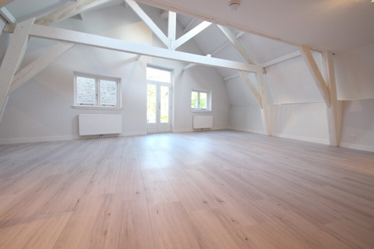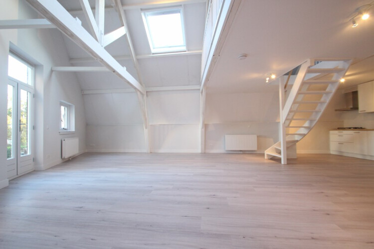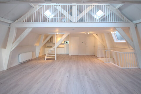 Deze prachtig ruime studio is gelegen op de 1e en 2e verdieping van een voormalig koetshuis aan de Weerdsingel oostzijde. U komt het appartement binnen in de ruime woonkamer met hierbij een open keuken die is v.v. van diverse inbouwapparatuur. De woonkamer beschikt tevens over een Frans balkon. Op deze verdieping is ook de badkamer gelegen met douche en wastafel. Er is een separaat toilet en een aparte ruimte met een wasmachine aansluiting. Middels een trap in de woonkamer gaat u naar de 2e verdieping maar het slaapgedeelte is gelegen op een ruime vide.