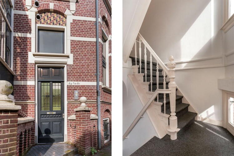 Entree in de gemeenschappelijke hal. Trappenhuis.