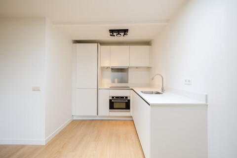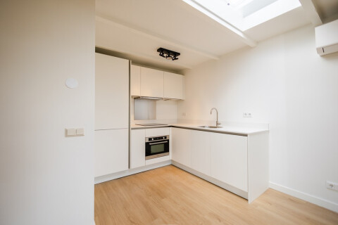 Entry into the living/sleeping area. This is easy to set up as a comfortable and functional space. A small hall is located at the front of the living area; ideal for a closet space. Also at the front a functional place that can be used as storage. The modern, bright kitchen diner is located at the rear. This is equipped with a refrigerator, freezer, dishwasher, hob, extractor hood, sink with thermostatic mixer and oven. In addition to all built-in appliances, the kitchen offers sufficient storage space. The bathroom is equid with a shower, sink with thermostatic tap, toilet and radiator. The studio apartment has several (roof) windows with double glazing.