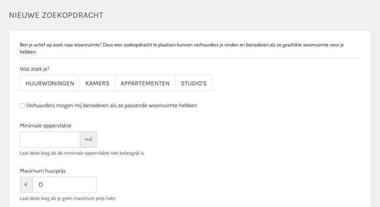 Geen zin in al die e-mails? Je kunt er ook voor kiezen om door verhuurders benaderd te worden.