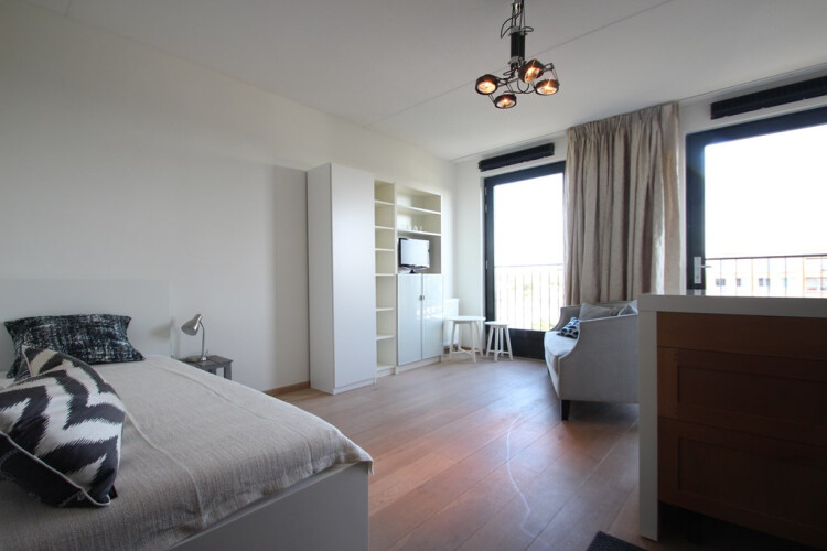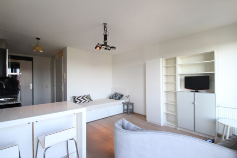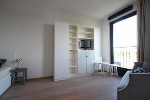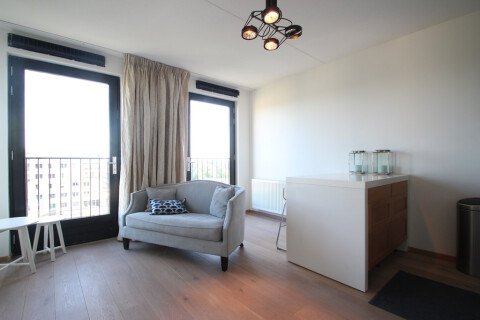 This completely furnished and fully equiped studio apartment is situated on the 3rd floor of the building and offers a magnificent view over Utrecht! The studio offers a light and bright sleeping and living area togerther with a French balcony that comes with a view over the Dom tower. On top of that the apartment offers a half open kitchen that is equipped with a fridge, oven/microwave, and a dishwasher. On top of that a Nespresso coffee machine, toaster, dishes and complete set of cutlery are present in this turn-key studio as well. The spacious bathroom is provided with a separate shower, sink, toilet and washing machine. The building furthermore offers a lift, bike-shed, communal roof terrace, indoor area and garden with picknick tables.